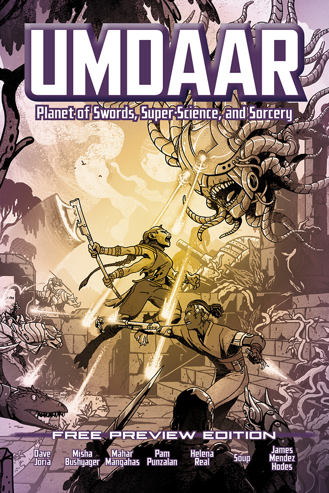 Umdaar: Planet of Swords, Super-Science, and Sorcery by Dave Joria with contributions from Pam Punzalan, Misha Bushyager, Mahar Mangahas, Helena Real, Soup, and James Mendez Hodes.