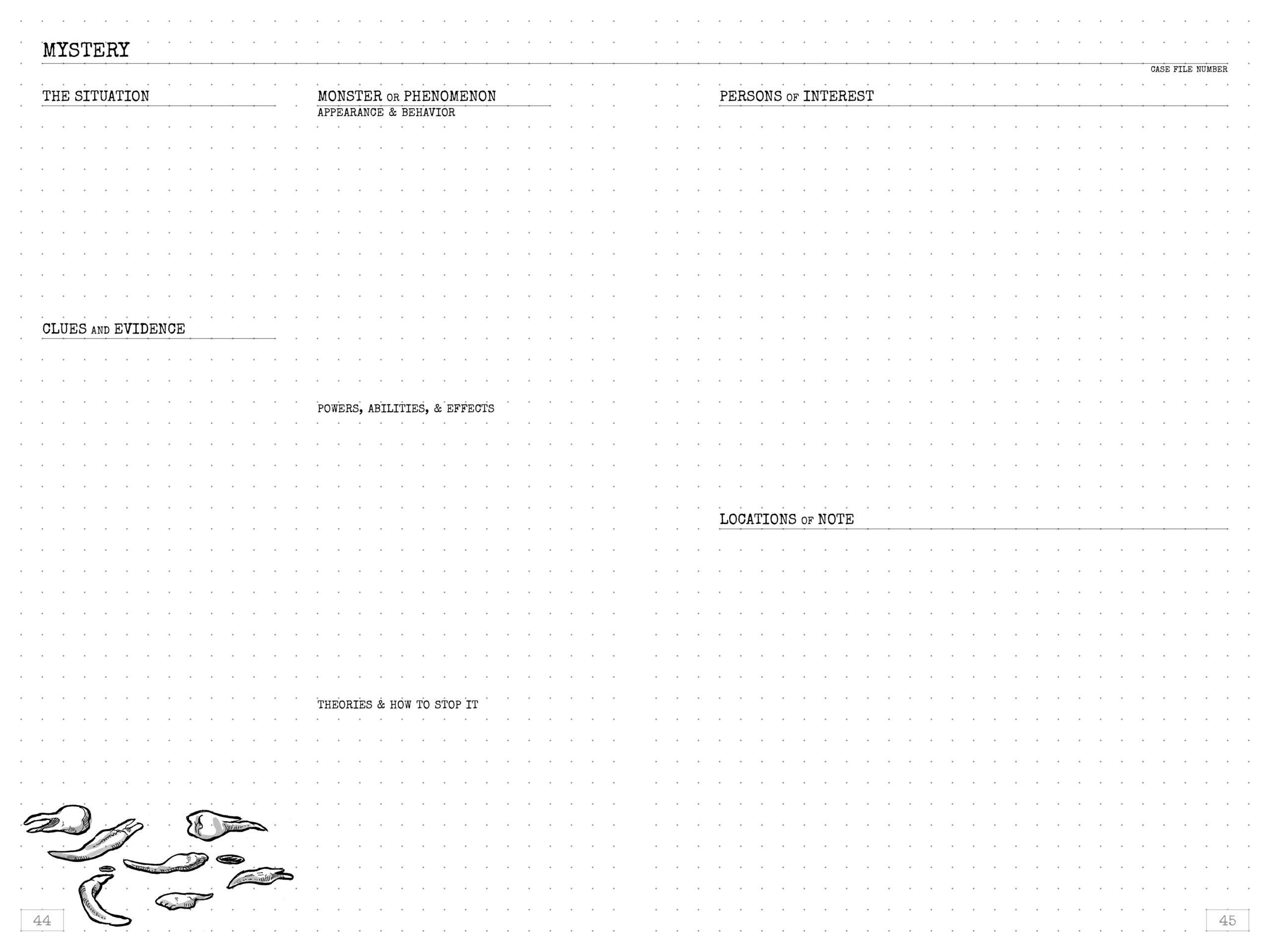 - The Mystery sections give you space to assess the situation, gather clues & evidence, and develop your key approach in defeating the supernatural forces opposing you.