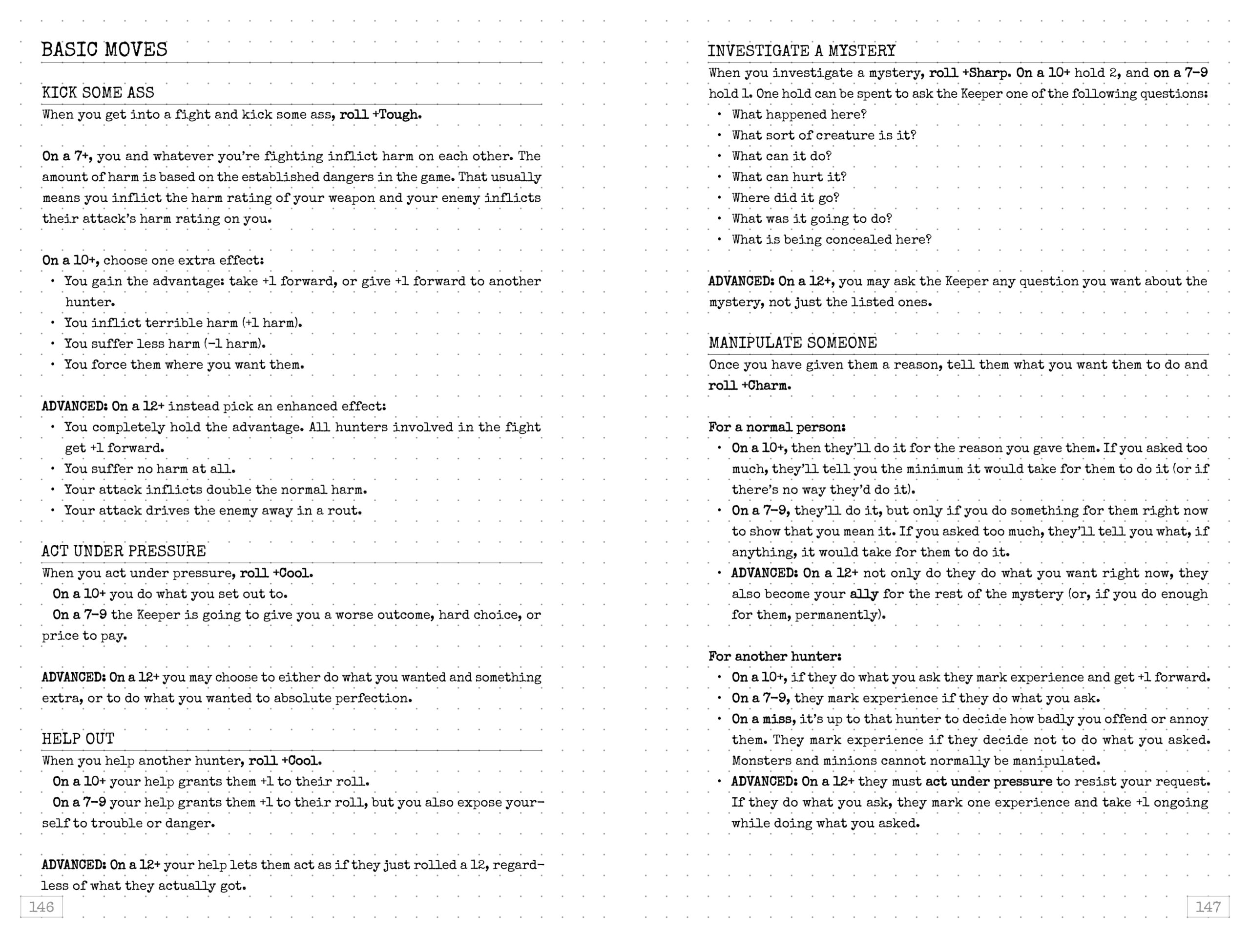- A final reference section puts Hunter concepts, basic moves, and alternative Weird moves at your fingertips.