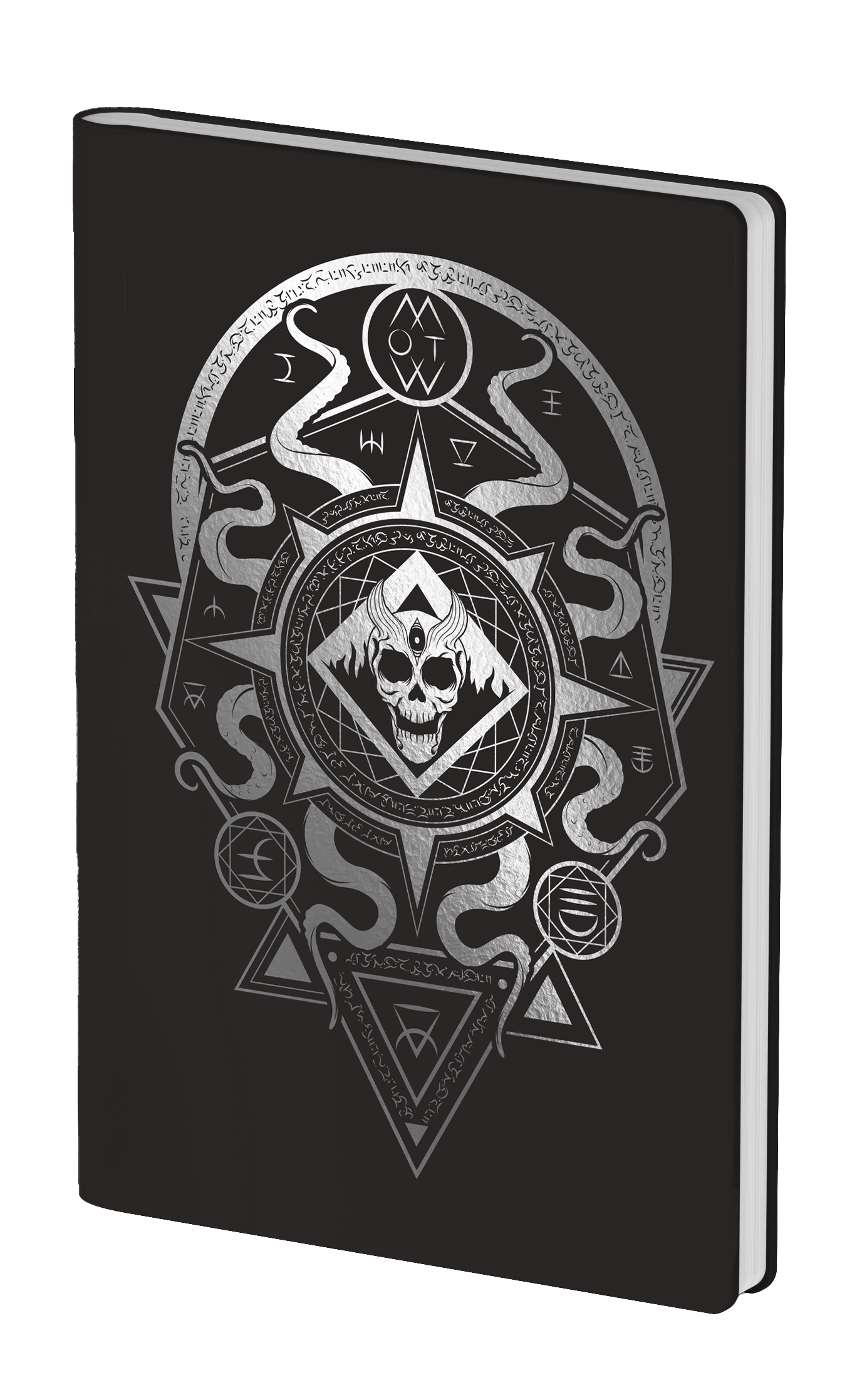 Track NPCs, clues, evidence, cryptids and more in this 160-page custom notebook. This 6″ x 9″ flexi-bound journal features a smooth black faux-leather cover embellished with a silver-foil-stamped design. Two ribbon bookmarks will help you navigate the multiple sections we’ve laid out: